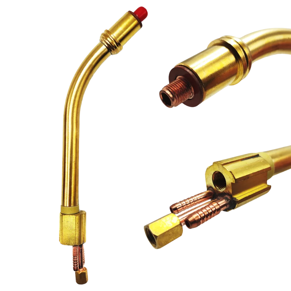 Wysokiej jakości korpus palnika (wersja zgięta), dedykowany do uchwytów spawalniczych typu MB-501 chłodzonych cieczą, to solidny i niezawodny element spawalniczy. Wykonany z trwałych materiałów, gwarantuje doskonałe parametry pracy, odporność na wysokie temperatury oraz intensywne użytkowanie. Dzięki swojej zgiętej konstrukcji zapewnia lepszy dostęp do trudno dostępnych miejsc, co zwiększa komfort i precyzję spawania.