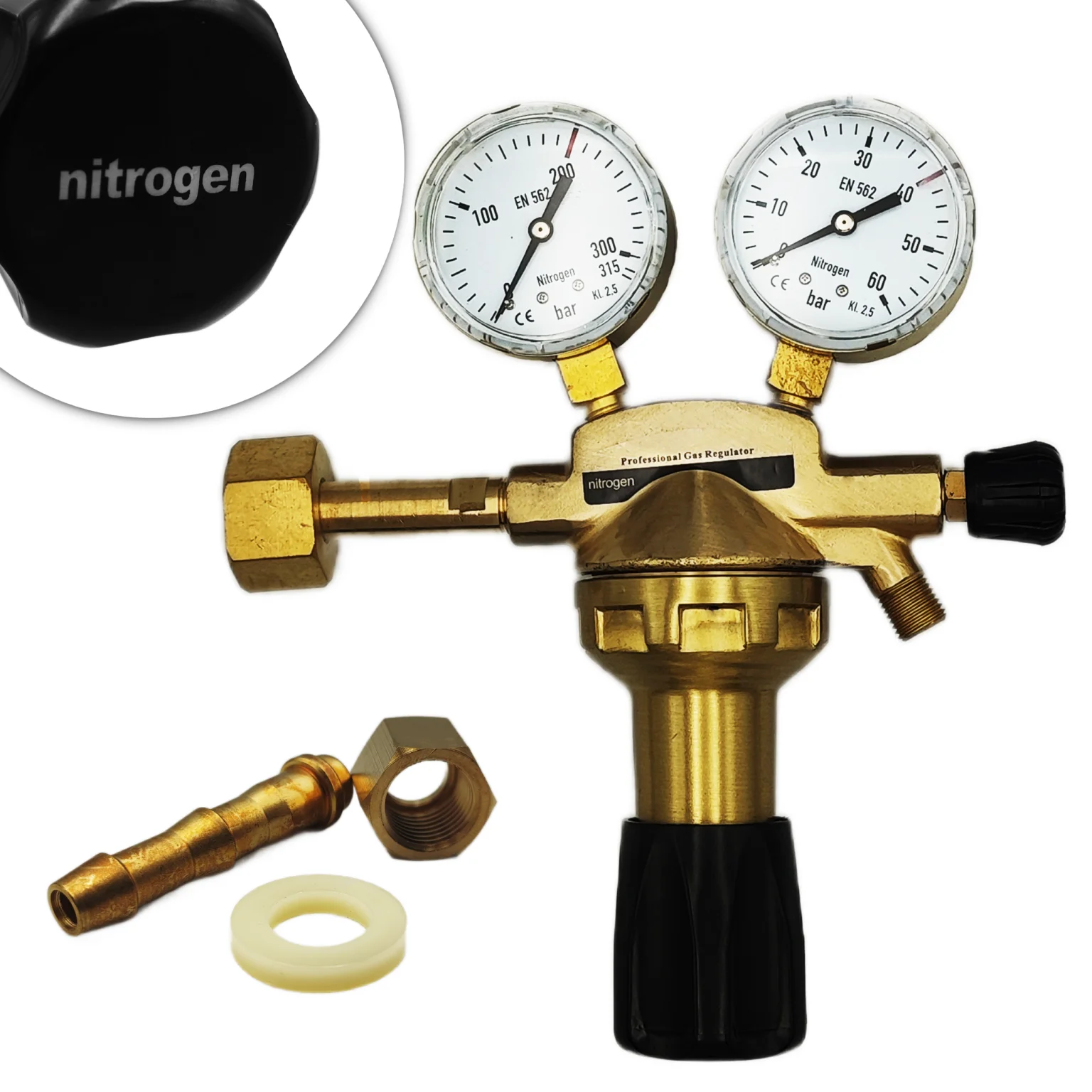 Reduktor posiada pokrętło regulacji w układzie pionowym oraz manometryczne wskaźniki ciśnienia wlotowego i ciśnienia roboczego.