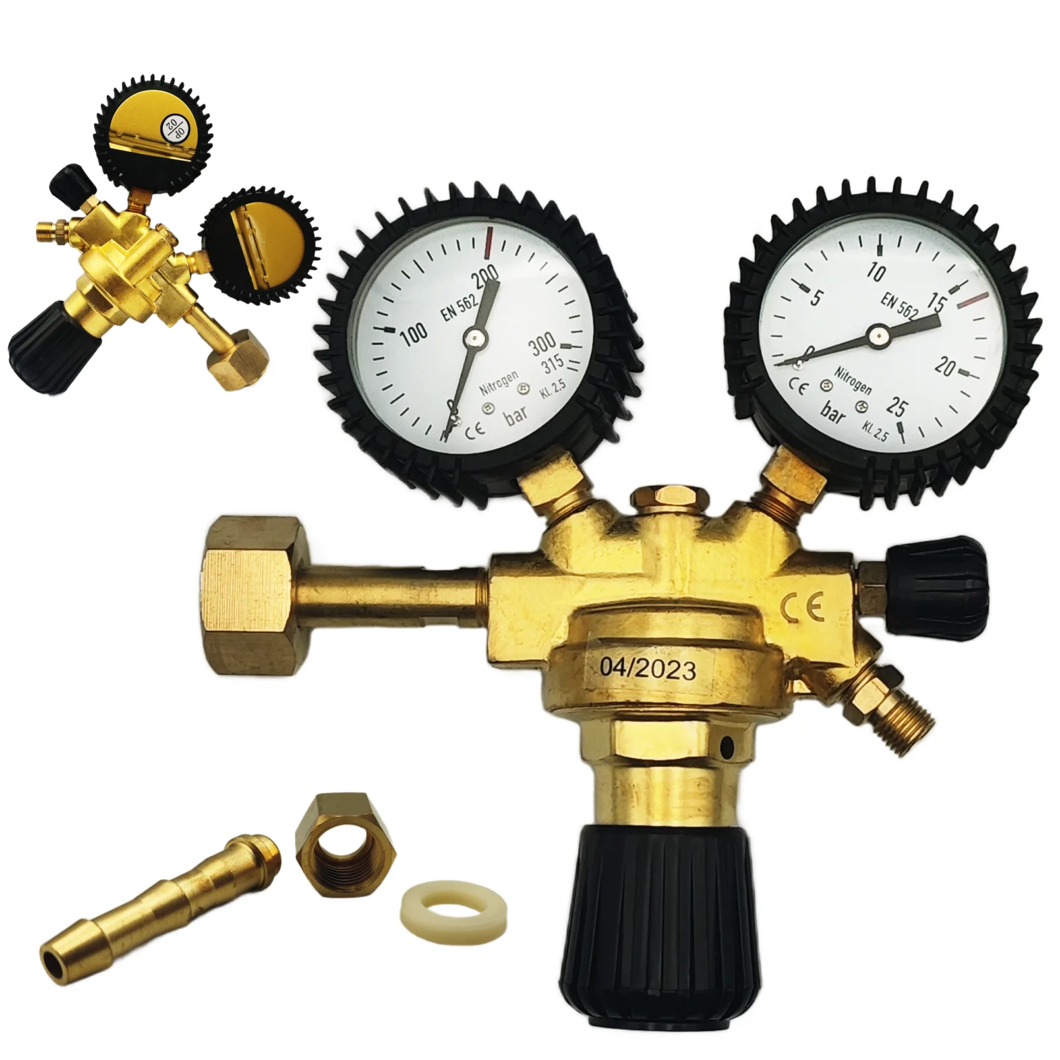 Reduktor posiada pokrętło regulacji w układzie pionowym oraz manometryczne wskaźniki ciśnienia wlotowego i ciśnienia roboczego.