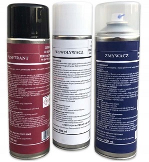 Badania metodą penetracyjną realizuje się przy użyciu zestawu SPAWCHEM. Wszystkie elementy zestawu są wolne od halogenów i siarki. Sposób i warunki prowadzenia badań penetracyjnych, a także sposób oceny materiałów do tych metod opisuje polska norma PN-EN ISO 571-1 i 3452. Zaleca się stosowanie wywoływacza w postaci aerozolowej, gdyż gwarantuje on nanoszenie równomiernej cienkiej warstwy na testowany element. Jednakże na życzenie Klienta możliwa jest dostawa wszystkich trzech elementów zestawu penetracyjnego w kanistrach 5l.